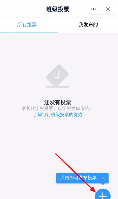 成功创建投票,如图,你可以点击右上角我来教你按钮,将投票发送到钉钉群聊。