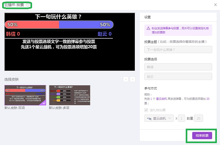 6、投票完成后,打开投票设置窗口,点击【结束投票】即可。