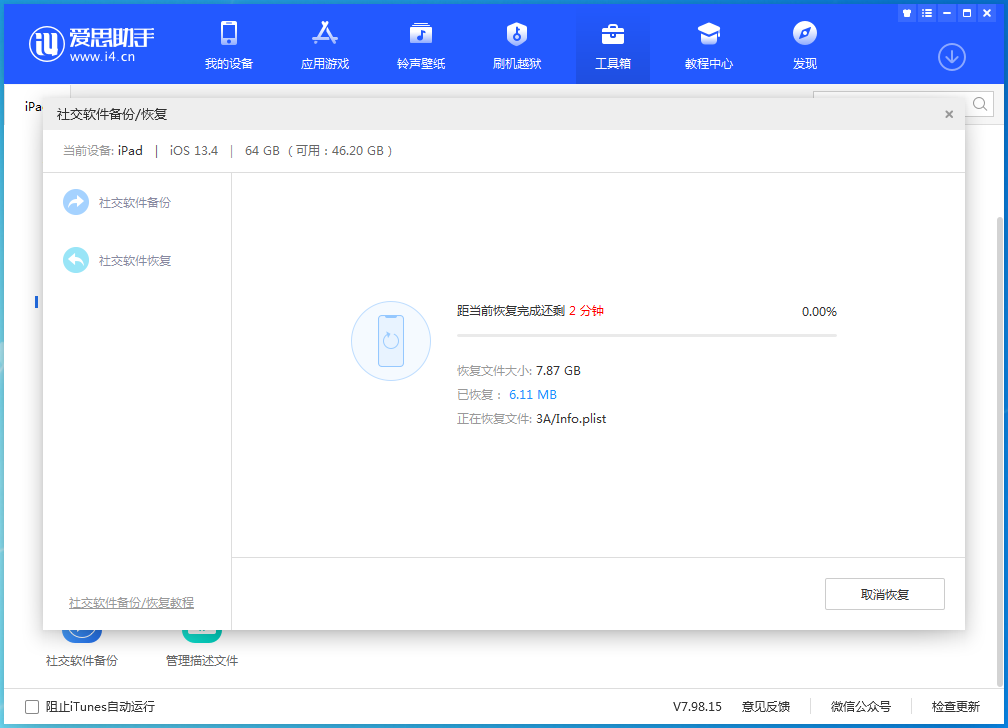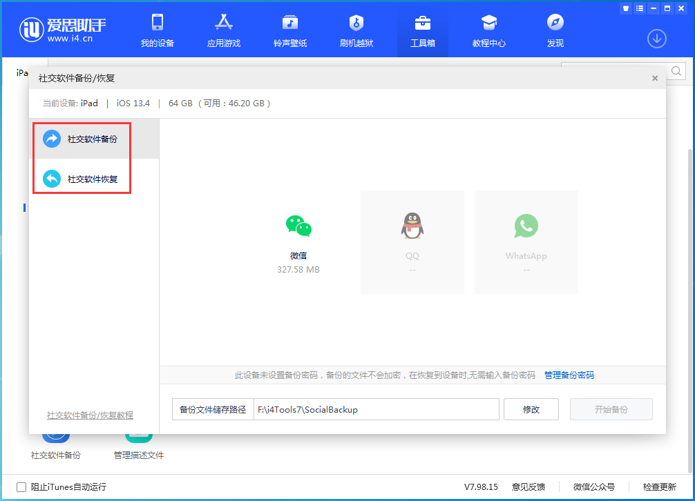 对于iOS用户来说,爱思助手提供的“社交软件备份/恢复”功能还是很实用的。想了解更多精彩教程资讯,请关注www.bafang18.com(扒房网)。
