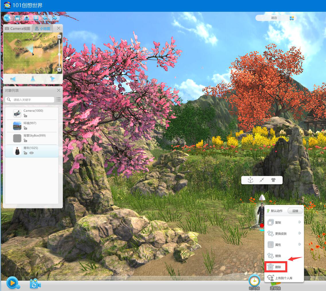 为此,很多新用户就问及101创想世界怎么删除模型?当用户添加的模型不喜欢的时候,先不用着急,按照下面的方法来操作即可解决。本文以删除VR中的人物为例子进行说明101创想世界删除模型的方法。