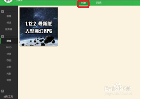 7、游戏被成功添加到麦块软件之后,点击【本地】。点击刚添加的游戏图标,点击齿轮图标,最后点击【游戏管理】。