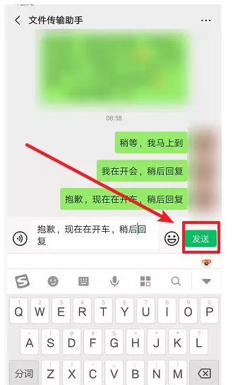 进入聊天窗口,如图,在文本框中输入快捷回复语,进行发送出去,可以多设置几条,