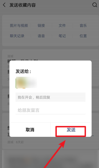 进入收藏界面,选择一条快捷回复短语,点击【发送】,即可实现快速回复对方。