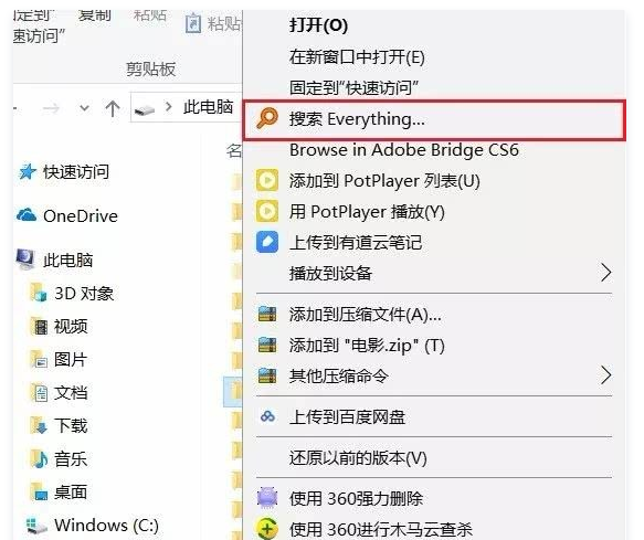 正常情况下,一旦安装了Everything,鼠标右击指定文件夹,即可看到该软件,如图,