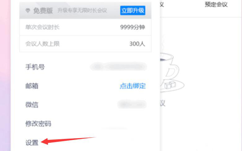 2、然后,在个人的腾讯会议电脑版界面中,点击“设置”,从而进行具体设置。