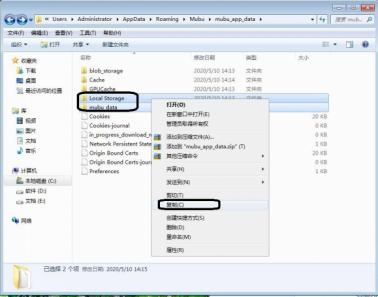 4、按照C:\\Users\\用户的登录帐号名\\AppData\\Roaming\\Mubu路径找到“mubu_app_data”文件夹。打开“mubu_app_data”文件夹,将“storage”、“mubu_data”两个文件夹直接复制粘贴到桌面。