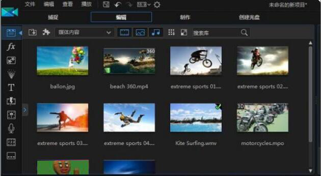 1、首先,用户运行已安装完毕的威力导演。在其向导页中,点击“全功能编辑器”进入操作界面。