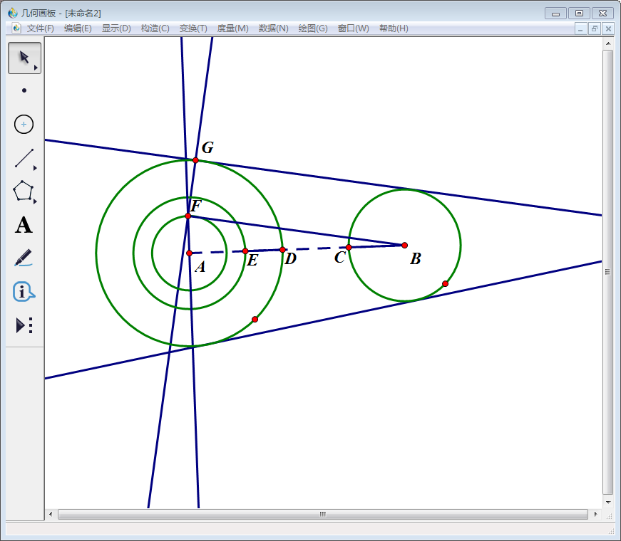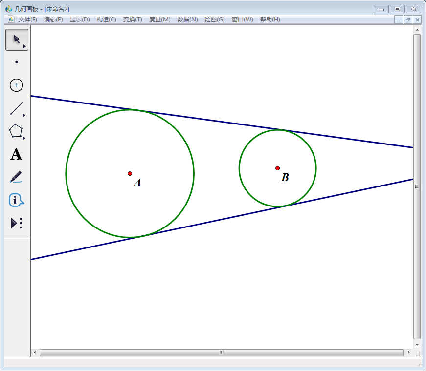 好了,使用几何画板画两圆外公切线的教程到这里就演示完了。通过这个教程的练习,相信大家对于几何画板中的“构造”命令会有深刻的认识。