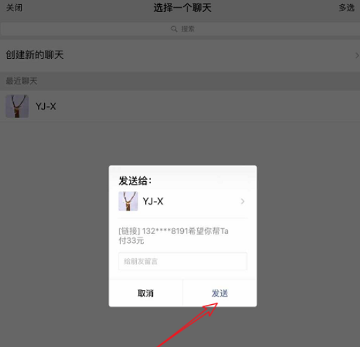 选中之后,点击【发送】,将付款链接发送给微信好友,
