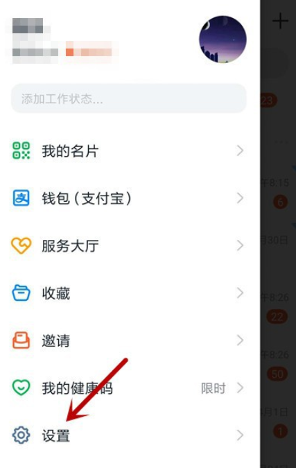 在手机中打开钉钉APP,登录账号,进入首页,点击左上角的头像,滑动页面,如图,点击底部的【设置】选项,