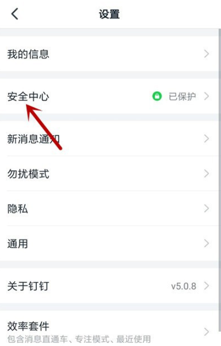 进入设置界面,如图,点击【安全中心】,