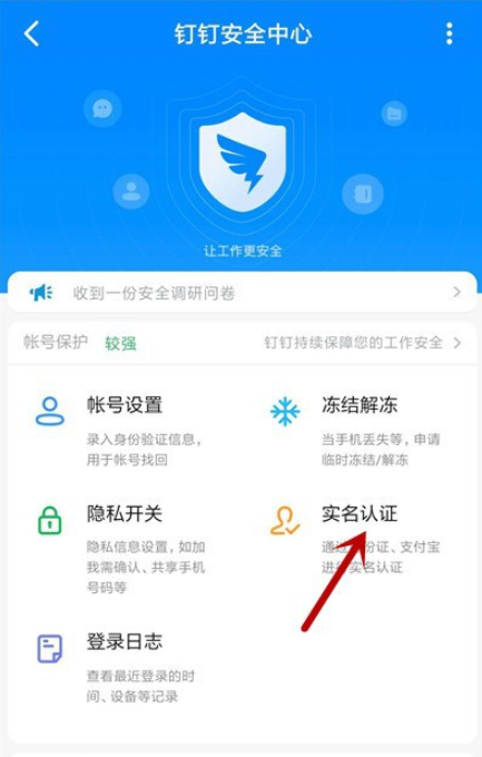 进入钉钉安全中心,点击其中的【实名认证】功能,