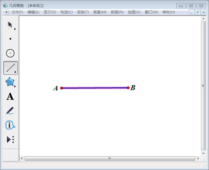 2、选择左侧工具栏中【线段直尺工具】,在画板上画一条线段,端点标为A、B,如图,