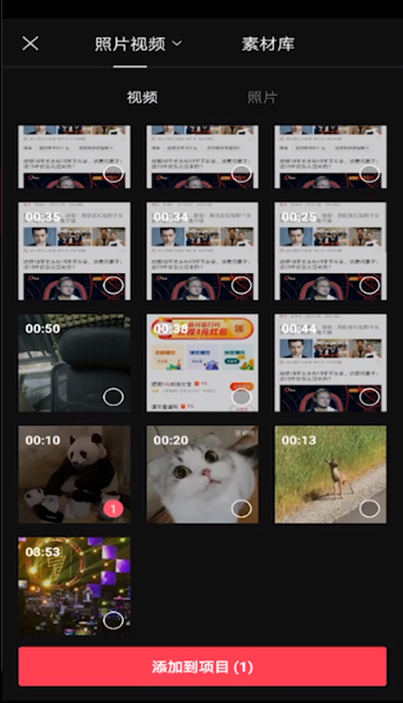 进入手机相册,选择需要处理的视频,点击【添加到项目】,现在进入视频编辑窗口,