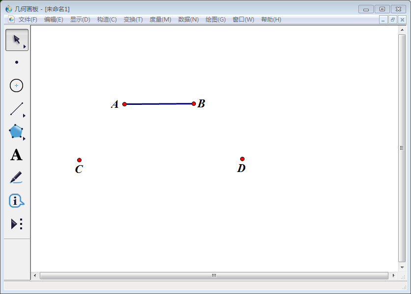 1、打开几何画板软件,使用左侧工具栏中的【线段直尺工具】画一条线段,然后使用左侧工具栏中的【文本工具】将其端点标记为A、B;