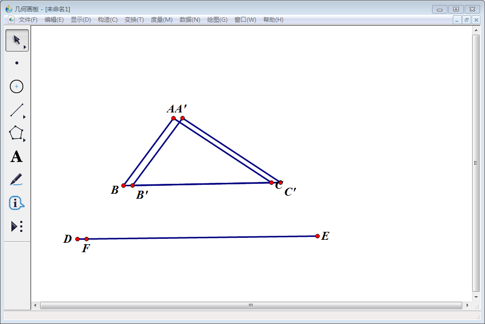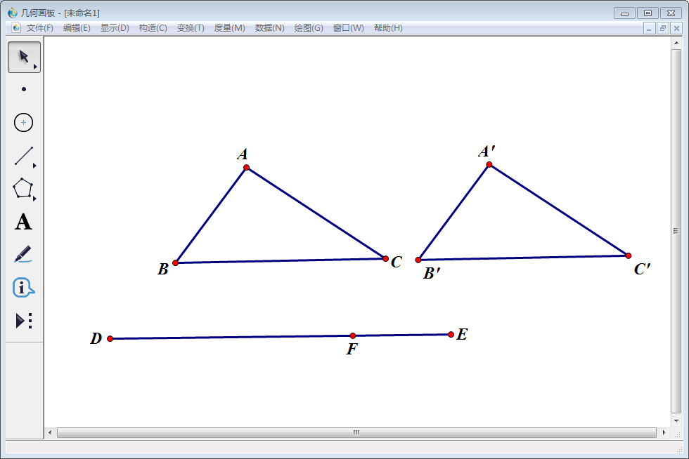 6、得到一个与原三角形全等的三角形,使用【文本工具】将其顶点分别标记为A\'、B\'、C\'。