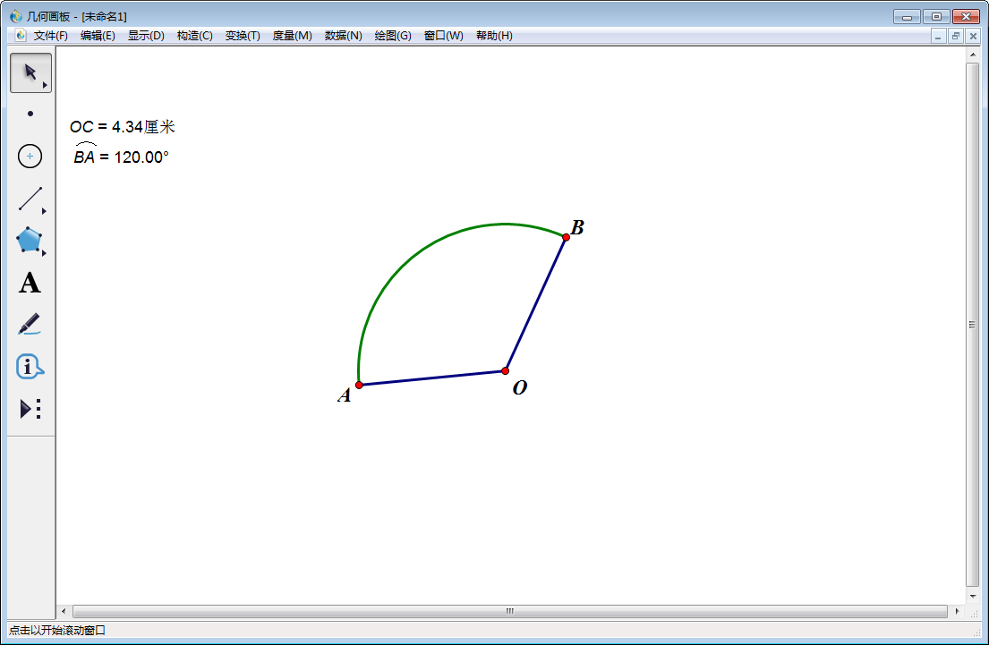 扇形是圆的的一部分,是由圆的的两个半径和一段圆弧围成图形。它同样是数学中基本的几何图形之一,因此在教学中经常会用到扇形,那么如何使用几何图板绘制扇形呢?下面我们以绘制一个固定度数的扇形为例,详细介绍扇形的画法。