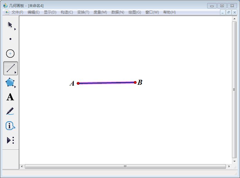 1、点击左侧工具栏中的【线段直尺工具】,在空白画板上画任意线段,使用左侧工具栏中的【文本工具】将线段两端点分别标为A、B。