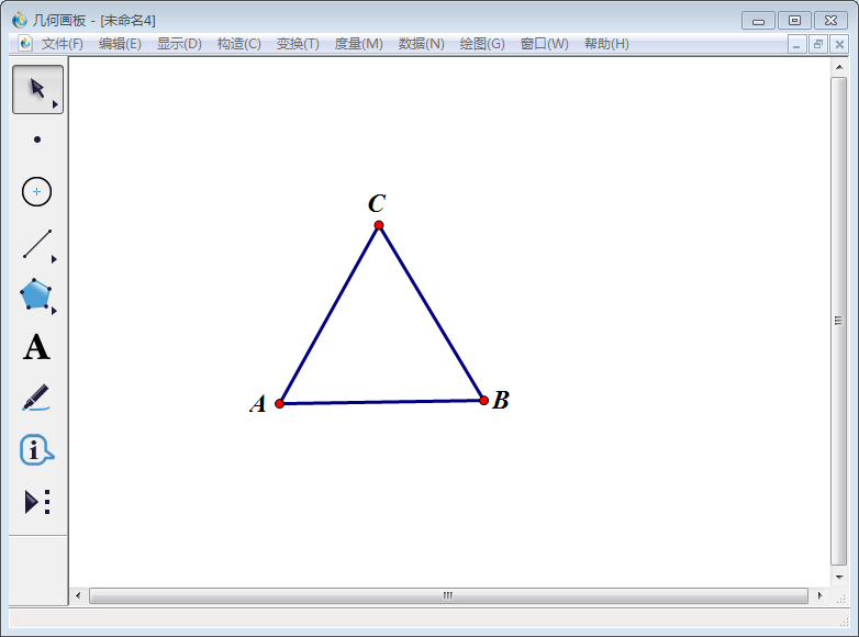 正三角形又被叫做等边三角形,是非常的特殊的三角形。它的特点在于三条边长度相等,那么如何使用几何画板快速绘制这样的特殊图形呢?下面我们就来进行介绍。