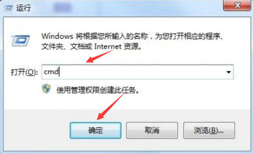1、首先,用户按下键盘的“win+R”打开运行窗口,在文本框中输入“cmd”,并点击“确定”按钮。