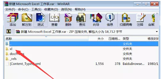双击打开对应的RAR压缩文件,如图,找到并双击xl文件夹,