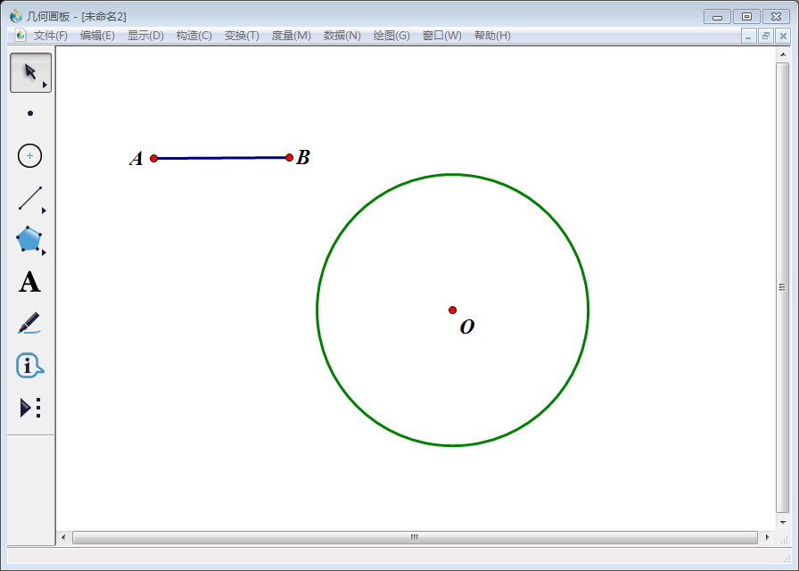 2、点击左侧工具栏中的【点工具】,在线段AB以外的适当位置任意取一个点,使用【文本工具】将该点标为O。