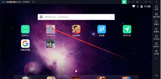 1、打开夜神模拟器,在应用中找到并点击【设置】。