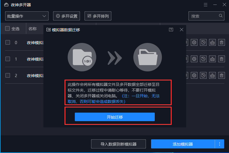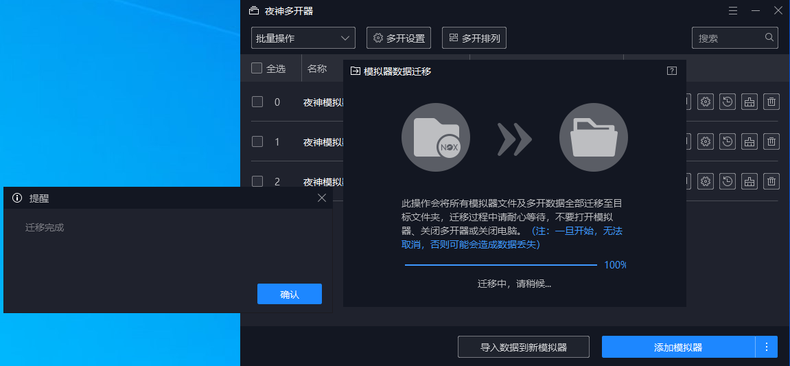 1)在迁移过程中不要打开或关闭模拟器或多开器。