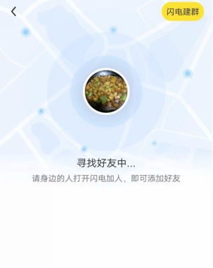 1)点击【闪电加人】。可以看到界面类似于微信的摇一摇,飞聊会自动搜索到周围开启闪电加人的用户,搜索到之后直接添加即可。