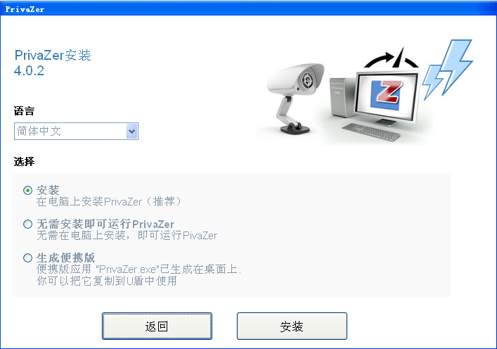 注意,Privazer安装方式有三种:1)直接安装在电脑上;2)无需安装即可运行;3)生成U盘便携版。