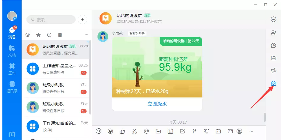 先打开目标群组,进入窗口,如图,点击右侧的【直播回放】按钮,