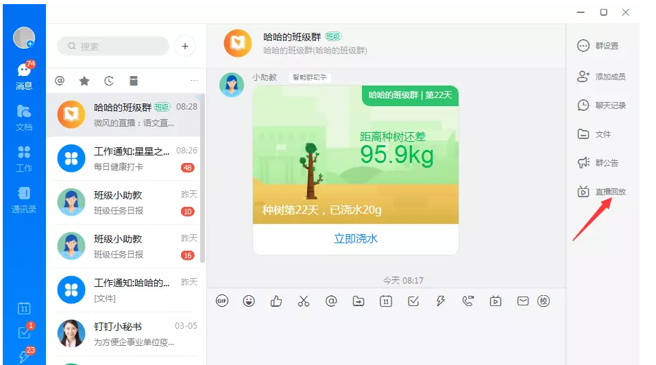 另外,如果你想回放钉钉群直播内容,可以这样操作:
