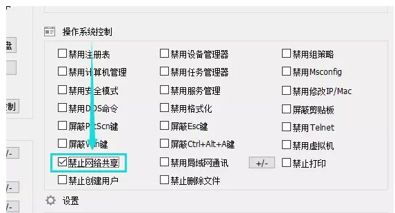 登录软件,进入主界面,在右侧找到【操作系统控制】选项,勾选【禁止网络共享】,