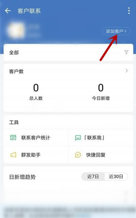 进入客户联系服务界面,如图,点击右上角的【添加客户】选项,