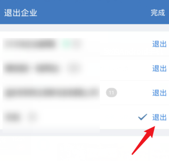进入退出企业窗口,选择目标企业,点击【退出】,出现提示,继续点击【退出】,即可删除该企业。