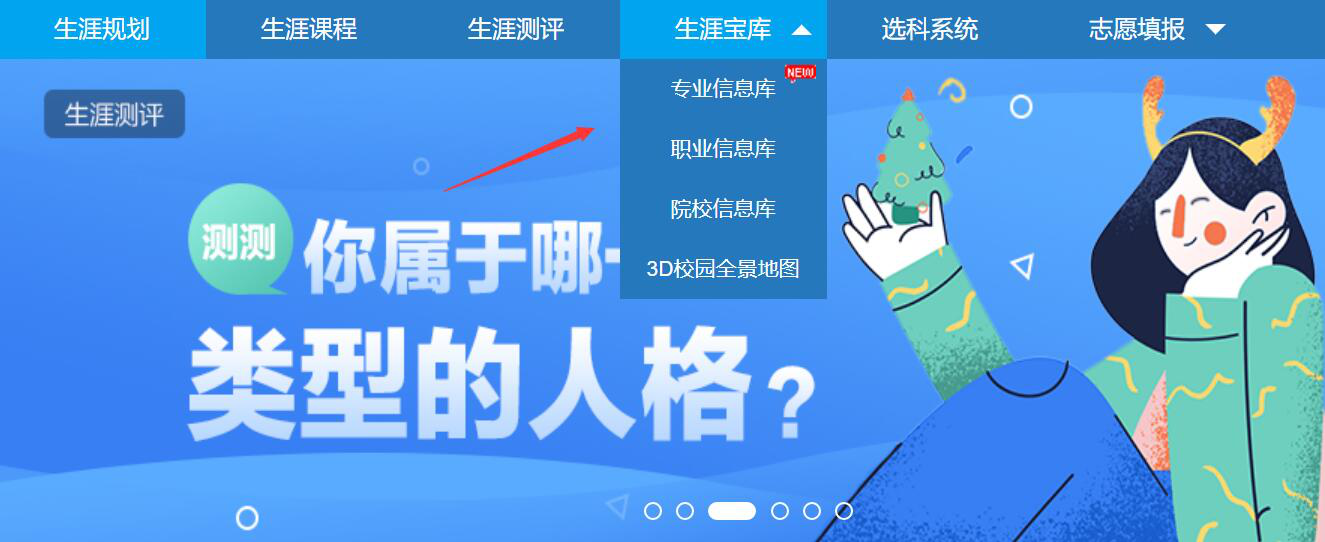 6、此外,很多高中生在做生涯规划时,都希望对相关的大学院校能了解更详尽,那就可以在升学e网通中,点击“生涯宝库”从中点击自己想要了解的信息内容进行具体了解。