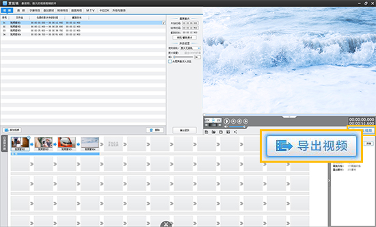 视频导入成功,你可以进行相关剪辑处理,然后点击预览框右下角的【导出视频】按钮,弹出【导出设置】对话框,选择视频格式、比特率、帧速率等,设置文件保存路径,最后点击【导出】,即可将所有视频合并。