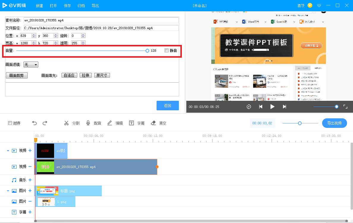 想给视频片段配上背景音乐,但是视频本身就有声音,不想让两种声音重叠,应该怎么设置?如图,选择视频,点击【静音】,然后添加背景音乐,就不用造成多种声音混合。