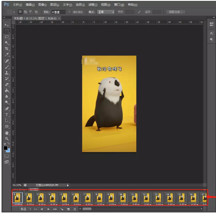 直接导入帧动画,在底部时间轴中可以看到视频长度,选择对应帧数,自行调节播放速度,