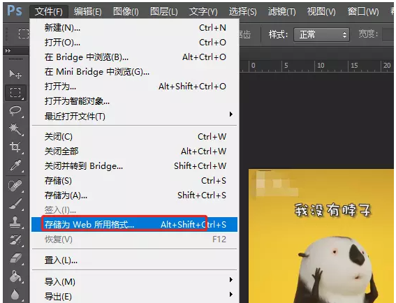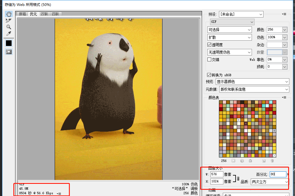 处理完成,在菜单栏中点击【文件】——【存储为Web所用格式】,弹出窗口,如图,你可以查看图片大小,确认误删,点击【存储】,即可生成GIF动图。