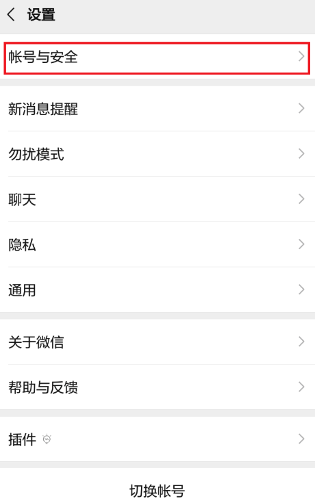 进入设置界面,如图,点击【账号与安全】选项,然后点击【微信安全中心】,