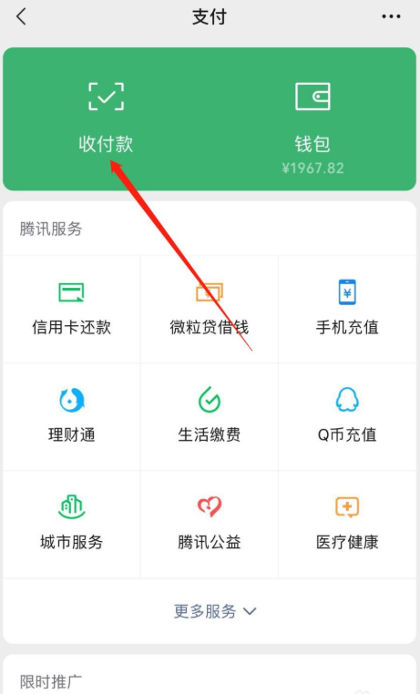 进入支付界面,如图,点击【收付款】选项,
