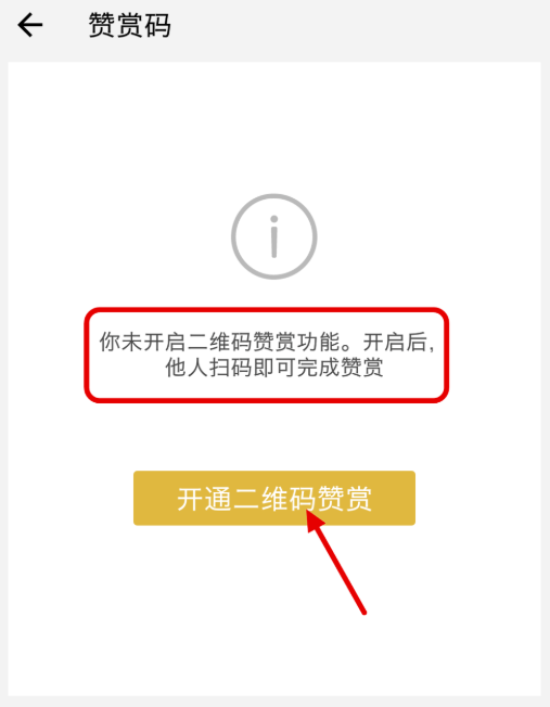 如果你之前没有用过赞赏码,初次启用该功能,会有提示“你未开启二维码赞赏功能”,点击【开通二维码赞赏】,