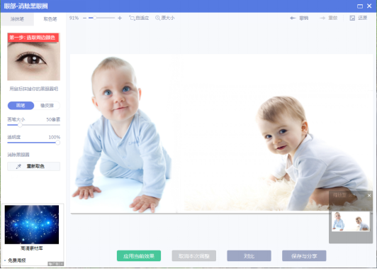 7、点击上方【人像美容】选项,然后在左侧列表中找到并点击【消除黑眼圈】。