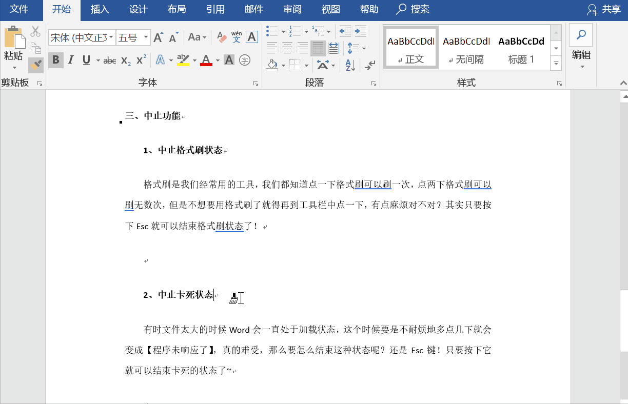 Word文档太大,软件可能会一直处于加载状态,如果你在不断点按鼠标,有可能出现程序未响应提示,非常耽误时间,怎么办呢?同理,点按Esc键,就能结束卡死状态~