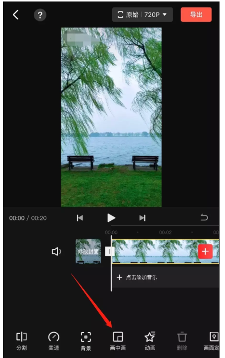 成功添加视频,进入视频剪辑界面,点击底部的【画中画】功能,
