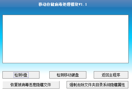 4、弹出“移动存储病毒处理模块”窗口,点击【检测U盘】。