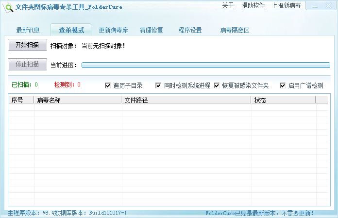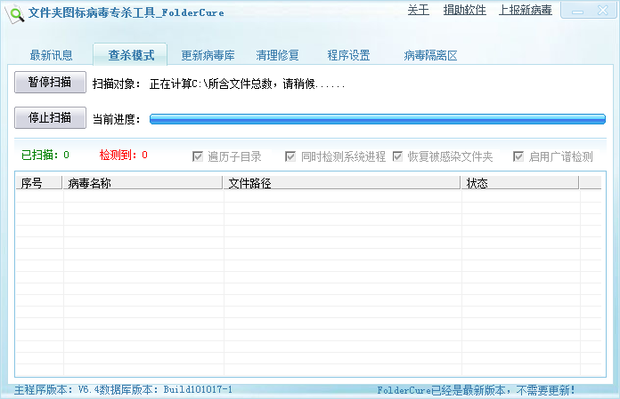 9、文件夹图标病毒专杀工具开始对文件夹图标病毒进行全盘扫描及查杀。