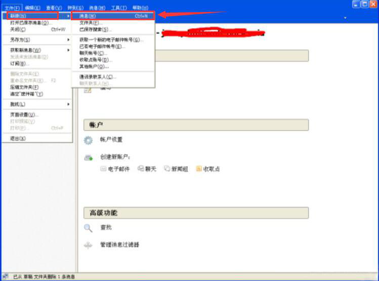 2、在mozilla thunderbird的主界面中,点击“文件”菜单中“新建”子菜单的“消息”,从而建立一个新的邮件。