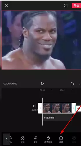 图片导入成功,进入编辑窗口,在下方工具栏中找到【美颜】功能,点击它,